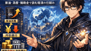 マクロ経済・為替・物価 戦争で物価が上がる理由とは?原油・円安・補助金から見る日本経済の仕組み 戦争で物価が上がる理由とは?原油・円安・補助金から見る日本経済の仕組みニュースを見ていると、戦争の話ばかりなのに、なぜか電気代や物価の話に変わっていくことがあります。どこか遠い国の出来事のはずなのに、気づくと毎月の支払いに影響している。正義... 2026.03.25 マクロ経済・為替・物価経済安全保障・地政学リスク