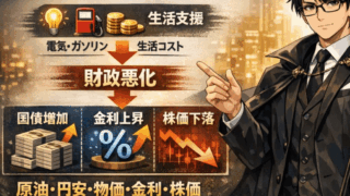原油高・円安・物価高・補助金・金利・株価はなぜ全部つながるのか原油価格が上がる。円安が進む。物価が上がる。政府が補助金を出す。金利が上がりやすくなり、株価が重くなる。一見すると、それぞれ別のニュースに見えます。けれど実際には、これらはバラバ...