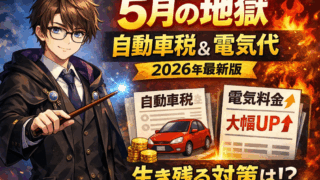 2026年5月、自動車税と電気代の二重負担が家計を直撃する5月は、家計の中でもかなり重い支出が重なる月です。とくに2026年は、自動車税と電気代の両方で「去年までの感覚」が通用しにくくなっています。自動車税は、納税通知書が届いたあとに何も考...